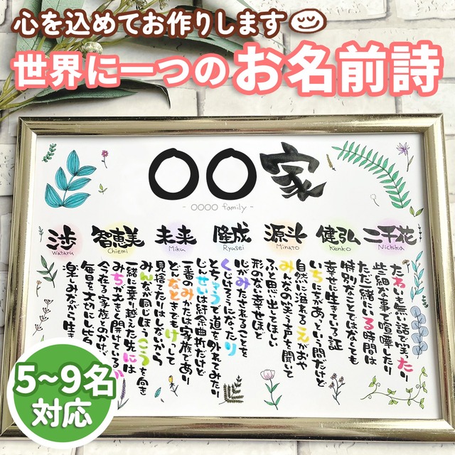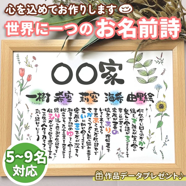 お名前詩 5名〜9名 手書きデザイン A4サイズ