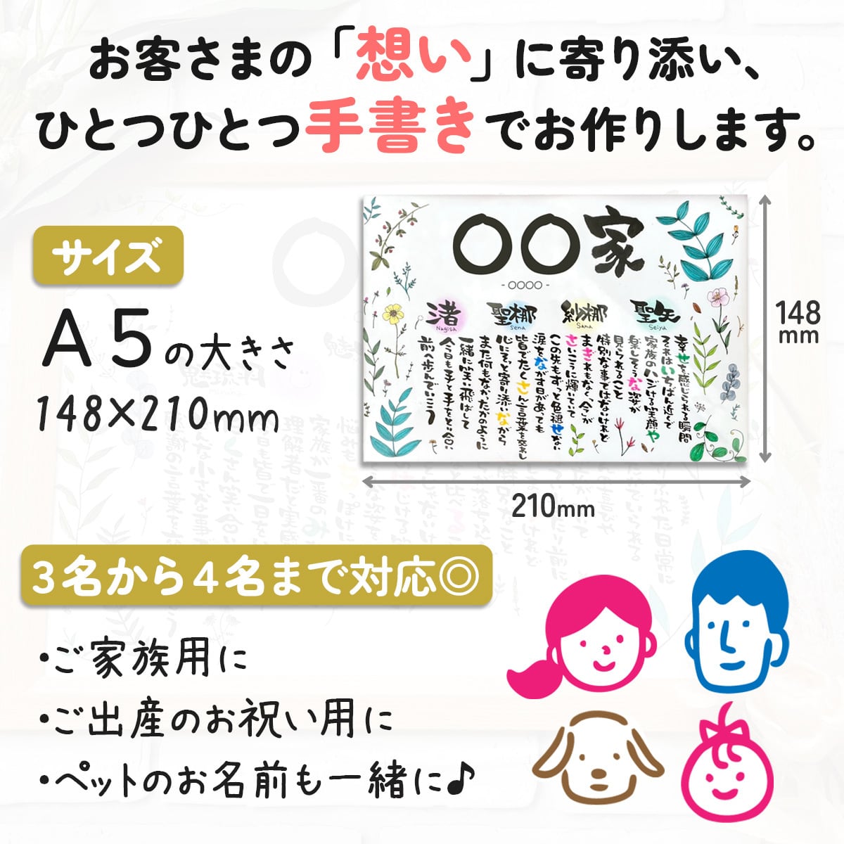 お客様の想いお聞きし、その想いに寄り添いながら私なりにメッセージを汲み取り、お客様に合った言葉を選び綴らせていただきます。